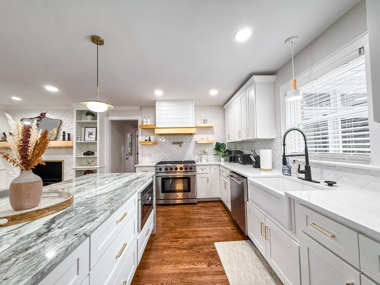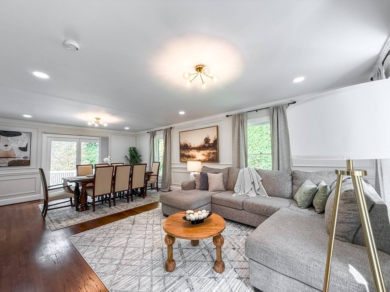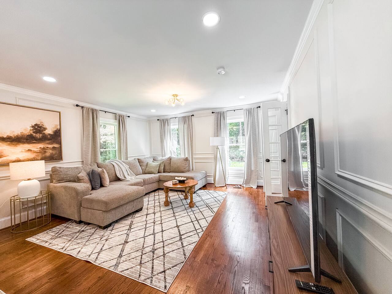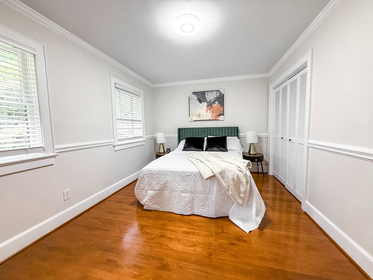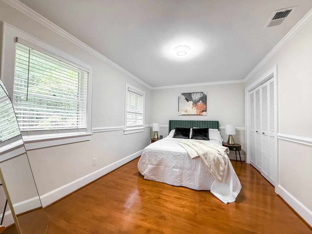 KEY FEATURES: ☀ 5 deluxe bedrooms: 1 king, 6 queen beds, and 2 single trundles. The 4th and 5th bedrooms are connected, providing a seamless layout that's ideal for families or groups. ☀ 3.5 modern bathrooms: including 2 bathtubs and 2 walk-in showers ☀ 3 cozy living rooms; 2 of which are equipped with flat-screen Smart TVs ☀ Fully equipped kitchen with stainless steel appliances and aesthetic design ☀ 3 dining areas: Formal dining room with an 8-seater wooden table, breakfast nook seating 6, and a 4-seater kitchen island ☀ In-unit laundry: washer + dryer ☀ Stable Wi-Fi (300-500 Mbps) ☀ Central air conditioning with a smart thermostat ☀ Expansive back deck for outdoor relaxation ☀ Large backyard for leisure ☀ Ample parking space for multiple vehicles