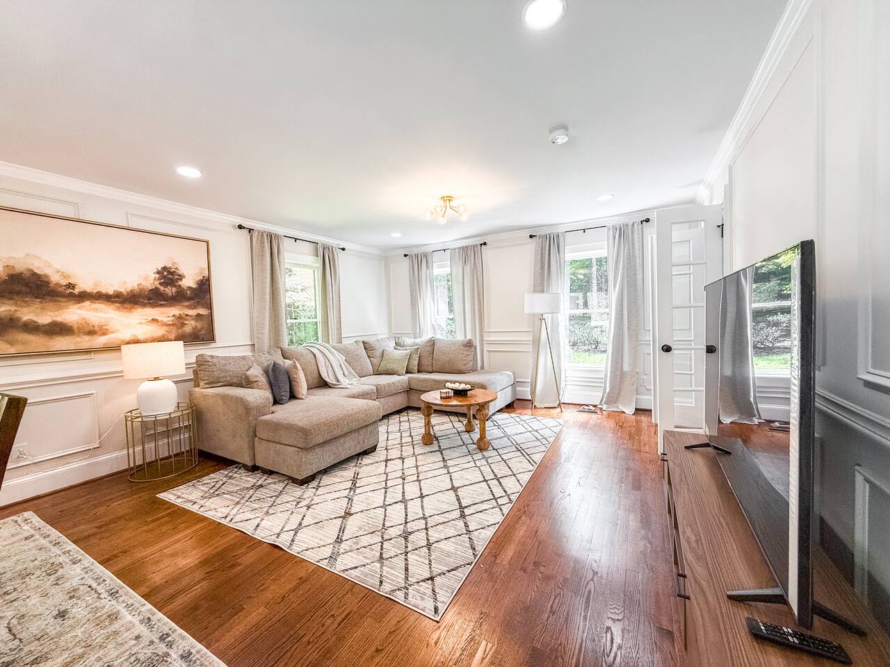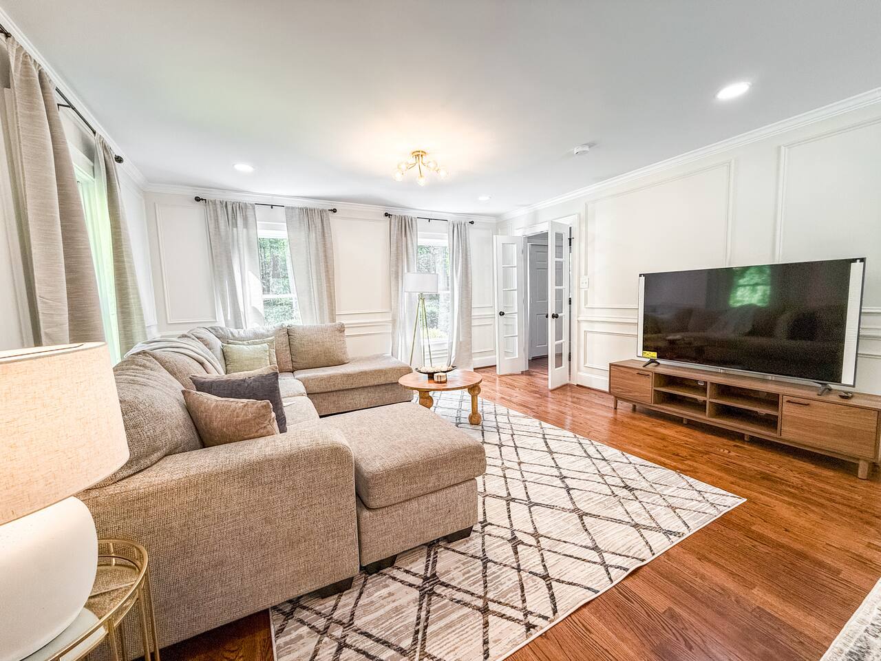 Discover serenity in this stunning 4,000 sq. ft. estate, nestled on 4 acres just minutes from everything Chapel Hill has to offer. This expansive retreat comfortably accommodates up to 16 guests, making it ideal for both relaxation and gatherings. Whether enjoying the elegant interiors or unwinding in the tranquil surroundings, you'll experience the perfect harmony of comfort and convenience in this beautiful getaway! Scan the QR code to watch the video tour of the property.