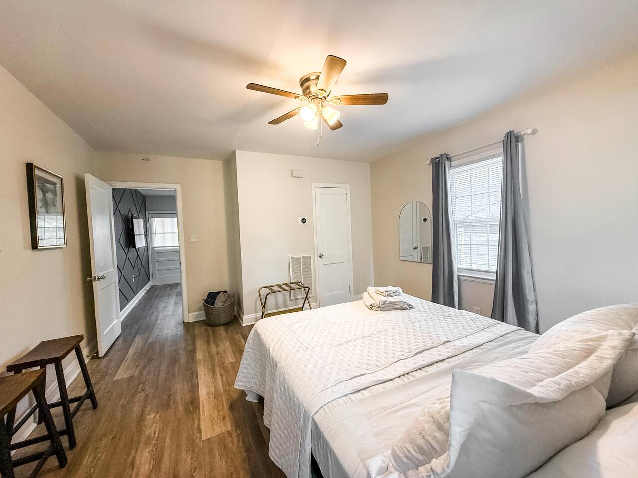 Dear Guests, We use air fresheners in our properties but can remove them upon request—please let us know in advance, as full removal of scent may take over 2 days. The property has a Smart TV, but cable is not provided. You can log in with your own streaming app subscriptions. The yard is mowed every 2-3 weeks; let us know if it needs attention on arrival, and we’ll arrange it. Parking is available on the street, with a small driveway on the left. The house is centrally located in Durham, where many older homes are being renovated or replaced. Please note that this property may experience noise due to its surroundings. The street can be loud at night, walls are somewhat thin, and neighbors, including an elderly resident next door who watches TV at high volume, may contribute to the noise. If you are sensitive to sound, this may not be the best fit for you. Also, please be aware that the couches were recently replaced. Lastly, due to the natural surroundings, there’s a small chance of pest encounters despite regular preventative treatment. We recommend keeping doors and windows closed to minimize this. Thank you for your understanding! Important: Double-check your dates before booking, as we do not accept alterations to shorten stays.