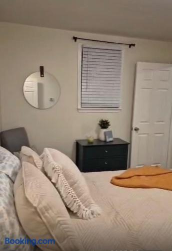 KEY FEATURES: ☀ 2 deluxe bedrooms 1st BR - 1 Full Bed 2nd BR - 3 Single Bed ☀ 1 full modern bathroom; bathtub and ensuite with the 1st BR. ☀ Cozy living room with flat screen Smart TV ☀ Full kitchen with stainless steel appliances, cookware, and utensils ☀ Stable wifi 300-500mbps ☀ Centralized AC with smart thermostat For added security, This property is equipped with a doorbell camera at the front door that features motion detection and recording capabilities, ensuring an extra layer of safety during your stay. Please rest assured that your privacy is our top priority. The camera is strictly for exterior monitoring and does not have access to any interior spaces. It is solely in place to enhance security and ensure peace of mind for our guests. Entire **Unit B side of the duplex**, offering complete privacy with its own entrance, living spaces, and amenities—perfect for a comfortable and independent stay.
