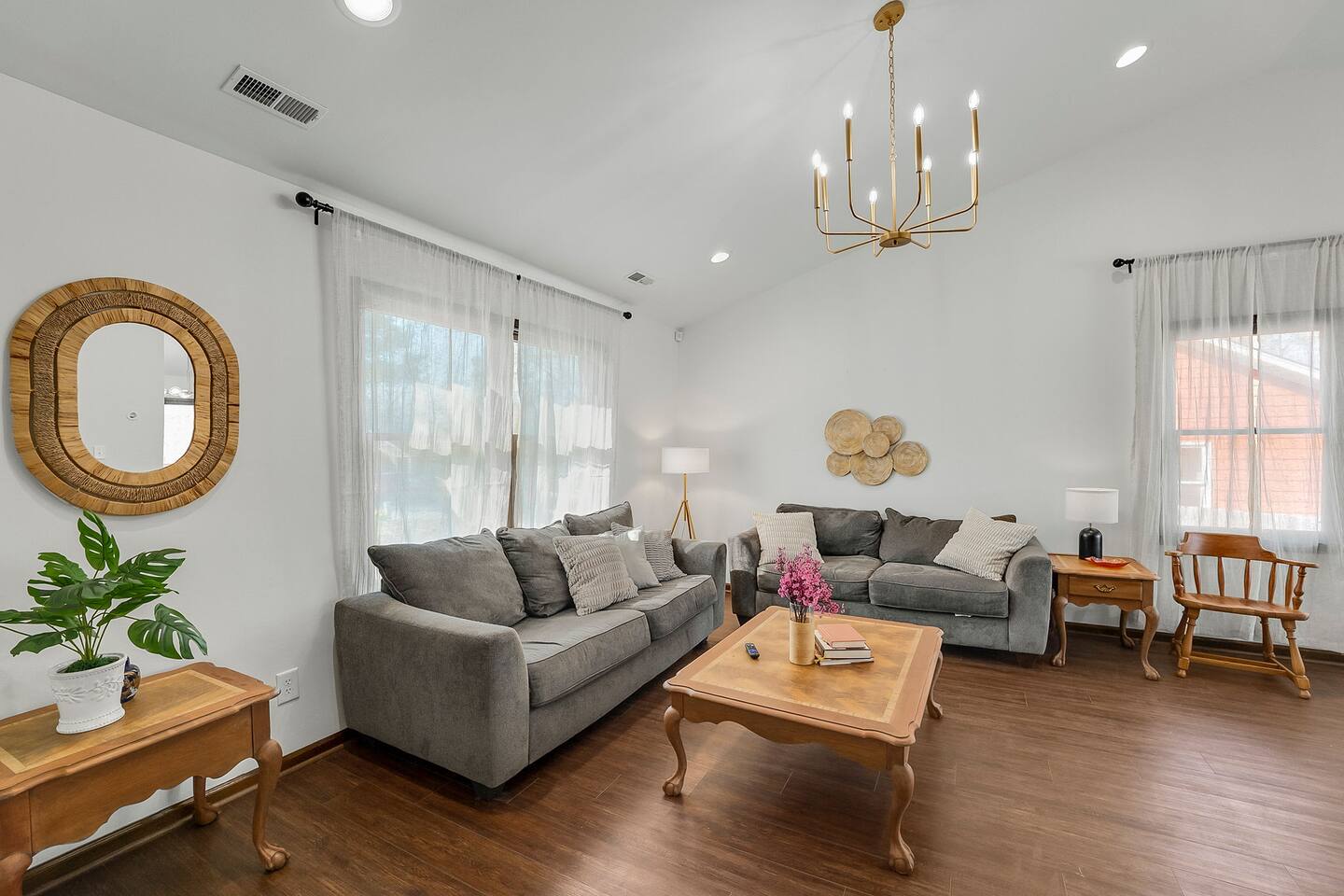 Dear Guests, We use air fresheners in our properties but can remove them upon request—please let us know in advance, as full removal of scent may take over 2 days. The property has a Smart TV, but cable is not provided. You can log in with your own streaming app subscriptions. The yard is mowed every 2-3 weeks; let us know if it needs attention on arrival, and we’ll arrange it. After booking, all guest names must be provided, as required by the city. Lastly, due to the natural surroundings, there’s a small chance of pest encounters despite regular preventative treatment. We recommend keeping doors and windows closed to minimize this. Thank you for your understanding! Important: Double-check your dates before booking, as we do not accept alterations to shorten stays.