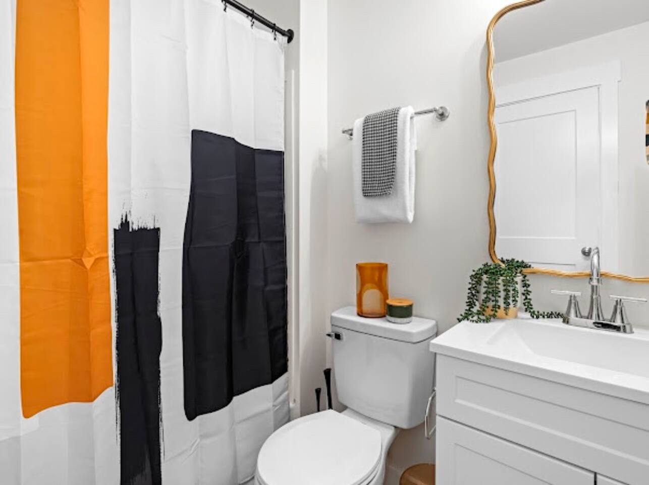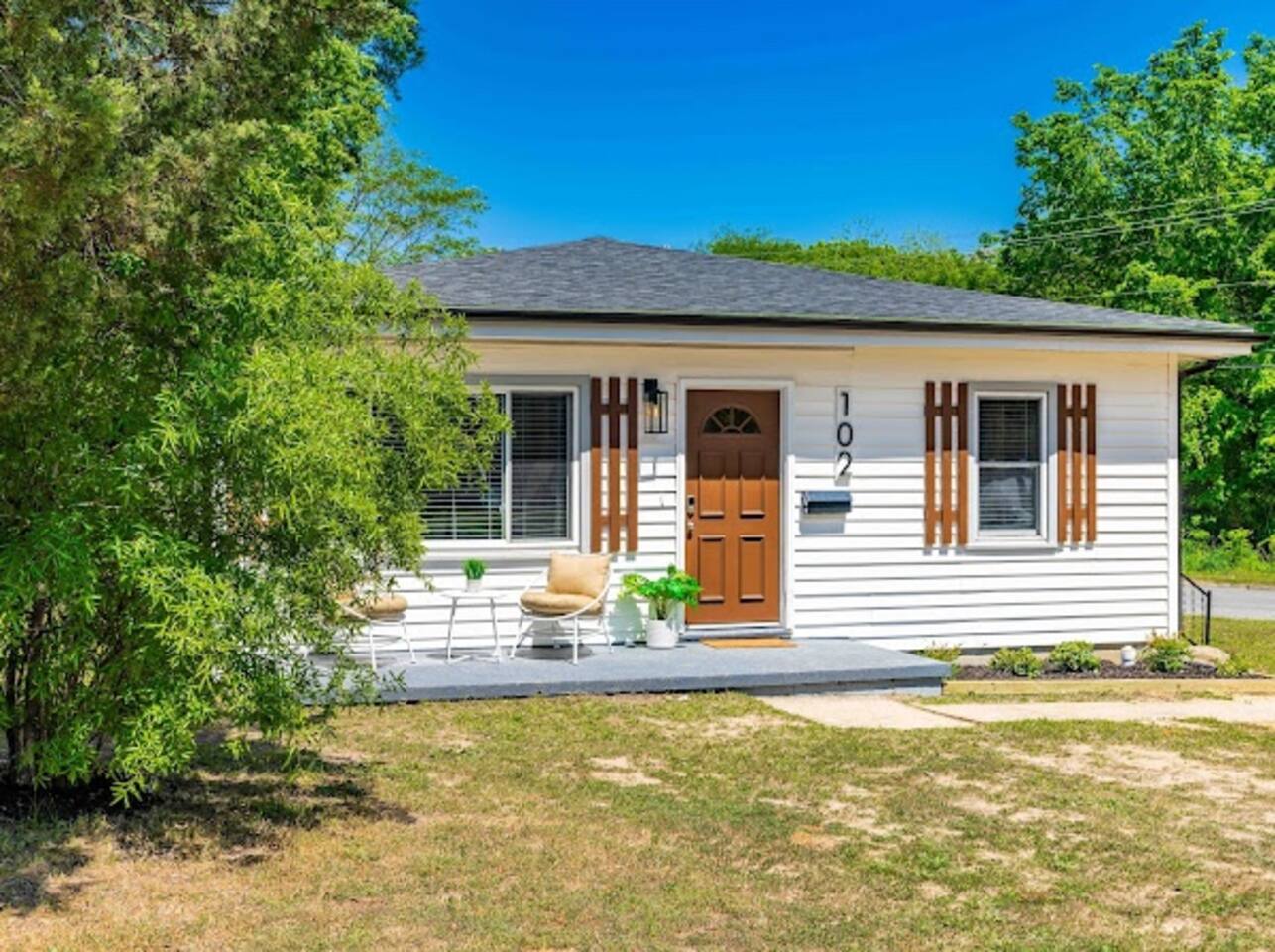 This charming property features three cozy bedrooms, each equipped with a smart TV for your entertainment pleasure. With two bathrooms and a fast internet connection, mornings are hassle-free for groups of up to six guests. Plus, the included washer and dryer ensure that you have everything you need for a comfortable stay. Design: Step inside to discover a modern interior, thoughtfully decorated with contemporary furnishings and chic accents. The open-concept living area is perfect for gatherings, boasting ample seating and a smart TV for entertainment. Amenities: Equipped with all the essentials, our home ensures a hassle-free stay. The fully stocked kitchen invites you to channel your inner chef, while the dining area is ideal for shared meals and memorable conversations. Enjoy high-speed internet throughout the house and unwind with your favorite shows on the smart TVs in every bedroom and the living room. Outdoor Space: Situated on a corner lot with a big yard, our property offers plenty of outdoor space to enjoy. Relax and soak up the sunshine on the front porch, furnished with comfortable outdoor furniture. Location: Conveniently located just minutes away from downtown Durham, you'll have easy access to an array of dining, shopping, and entertainment options. Explore the nearby parks, catch a show at the DPAC, or simply soak in the local charm. Highlights: Newly renovated Three bedrooms, two baths Sleeps up to six guests Smart TVs in every bedroom and living room Fast internet connection Washer and dryer included Corner lot with a big yard Outdoor furniture on the front porch Close to downtown Durham Whether you're here for work or play, our inviting space promises a delightful stay in the heart of Durham. Book now and make yourself at home! For added security, this property is equipped with a doorbell camera positioned at the front door and two exterior security cameras positioned at each corner of the back part of the property. These cameras are equipped with motion detection and recording capabilities, ensuring an extra layer of safety during your stay. Please rest assured that your privacy is our top priority. The cameras are strictly for exterior monitoring and do not have access to any interior spaces. They are solely in place to enhance security and ensure peace of mind for our guests.