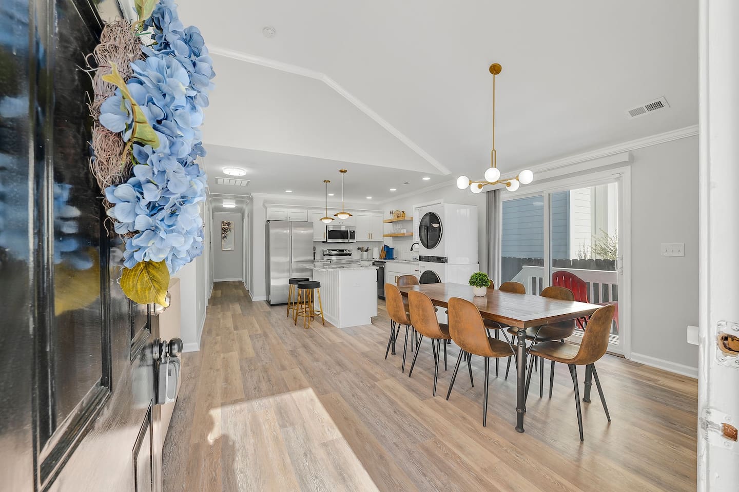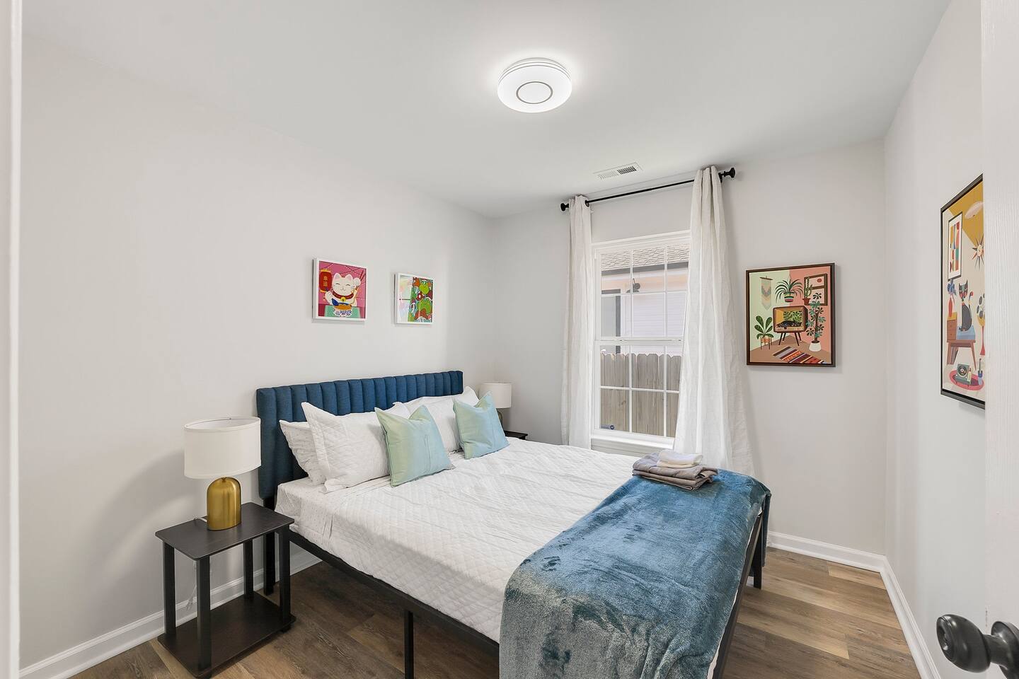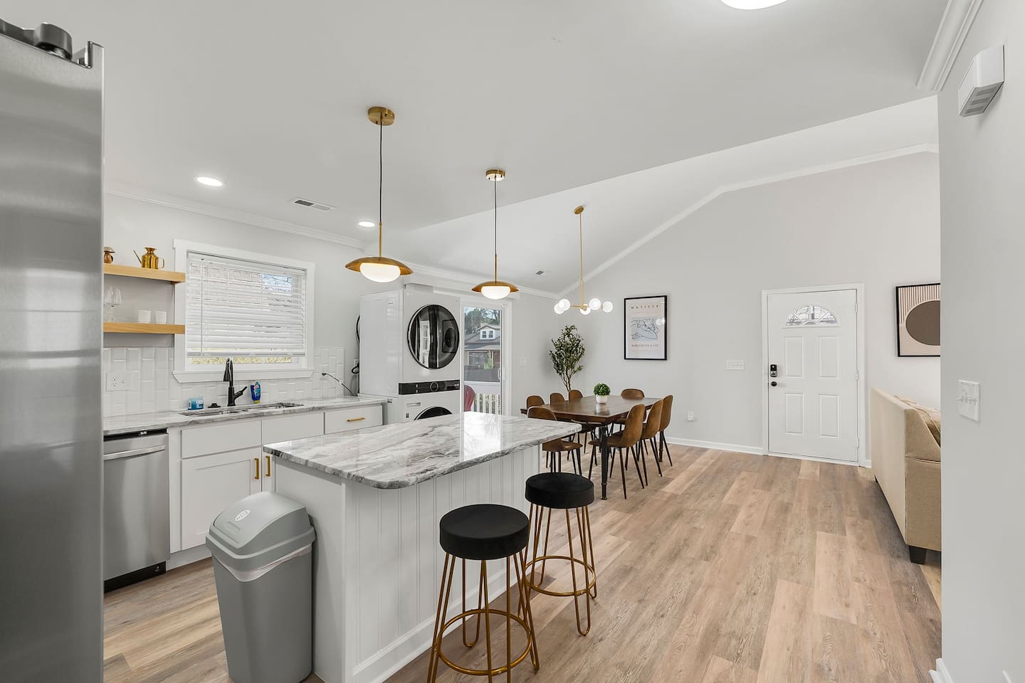 KEY FEATURES: ☀ 4 deluxe bedrooms; 1 king, 2 queens, 2 single beds ☀ 2 full modern bathrooms; bathtub and walk-in shower ☀ Cozy living room with flat screen Smart TV ☀ Full kitchen with stainless steel appliances, cookware and utensils ☀ Dining Area w/ 8-seater table with extra seats at kitchen island ☀ Laundry Area w/ In-unit washer + dryer ☀ Stable wifi 300-500mbps ☀ Centralized AC with a smart thermostat ☀ Fenced backyard with fire pit For added security, this property is equipped with a doorbell camera positioned at the front door and two exterior security cameras positioned at each corner of the back part of the property. These cameras are equipped with motion detection and recording capabilities, ensuring an extra layer of safety during your stay. Please rest assured that your privacy is our top priority. The cameras are strictly for exterior monitoring and do not have access to any interior spaces. They are solely in place to enhance security and ensure peace of mind for our guests.