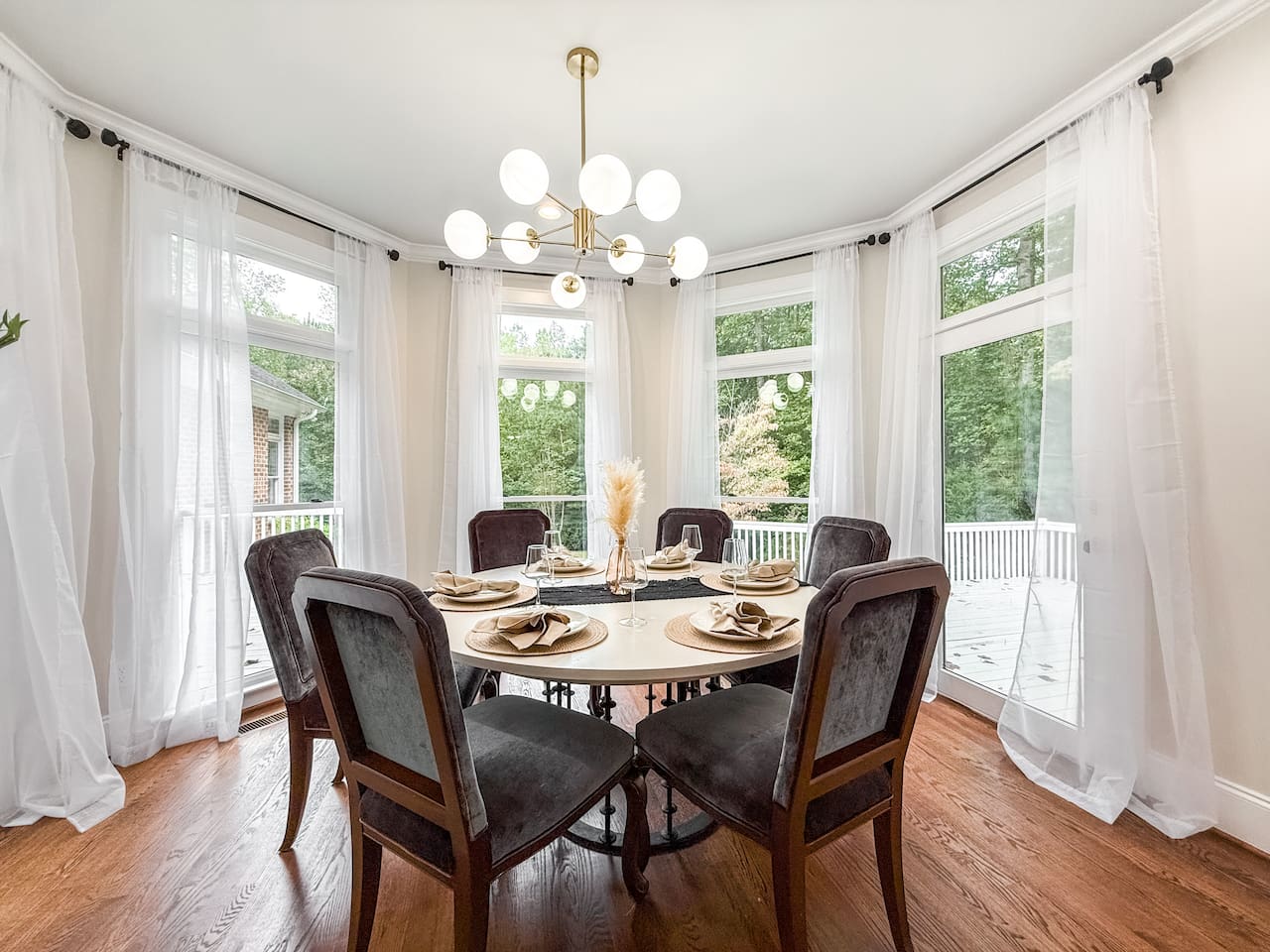 Escape to this serene 4,000 sq. ft. estate set on 4 acres, offering the perfect blend of seclusion and accessibility, just minutes from the heart of Chapel Hill. Spacious enough to comfortably host up to 16 guests, this stunning retreat is ideal for family gatherings, celebrations, or simply unwinding in nature. Whether you're relaxing in the beautifully designed interior or enjoying the private surroundings, this estate promises a perfect getaway for every occasion.
