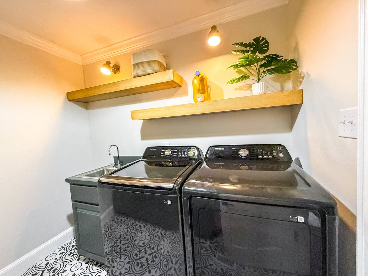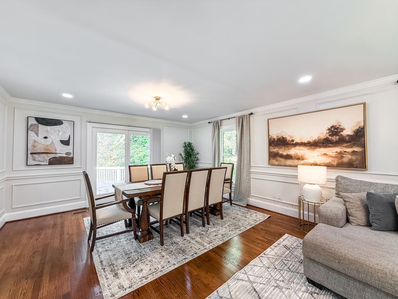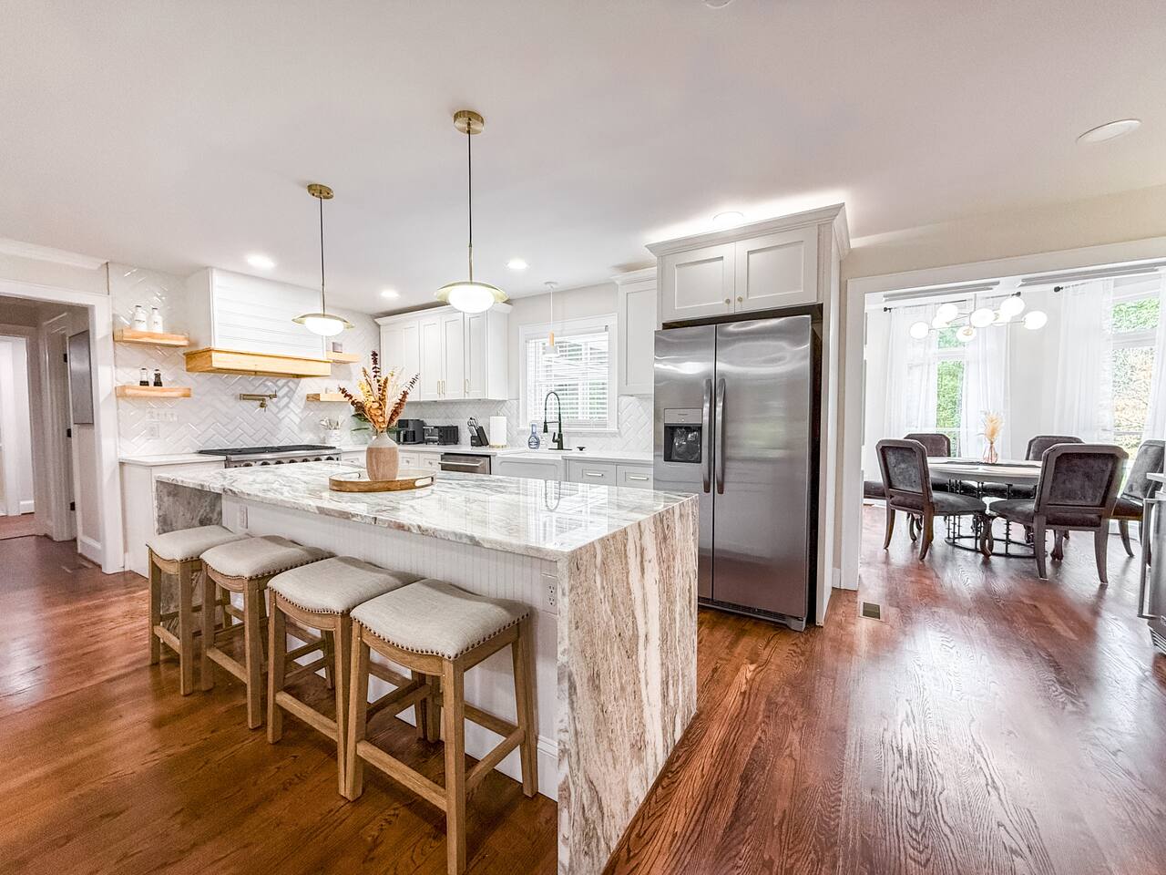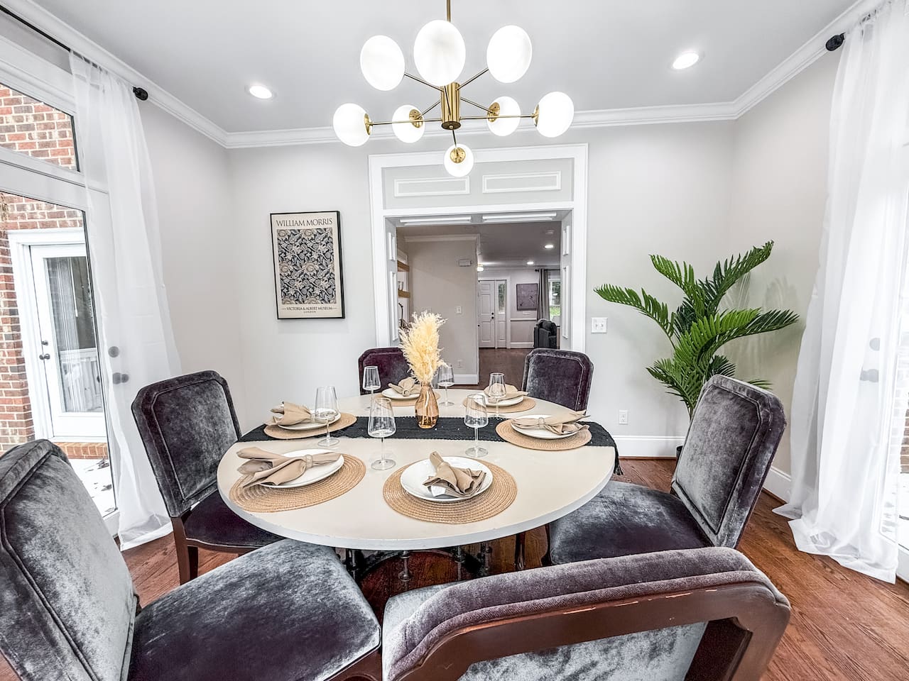 KEY FEATURES: ☀ 5 deluxe bedrooms: 1 king, 6 queen beds, and 2 single trundles. The 4th and 5th bedrooms are connected, providing a seamless layout that's ideal for families or groups. ☀ 3.5 modern bathrooms: including 2 bathtubs and 2 walk-in showers ☀ 3 cozy living rooms; 2 of which are equipped with flat-screen Smart TVs ☀ Fully equipped kitchen with stainless steel appliances and aesthetic design ☀ 3 dining areas: Formal dining room with an 8-seater wooden table, breakfast nook seating 6, and a 4-seater kitchen island ☀ In-unit laundry: washer + dryer ☀ Stable Wi-Fi (300-500 Mbps) ☀ Central air conditioning with a smart thermostat ☀ Expansive back deck for outdoor relaxation ☀ Large backyard for leisure ☀ Ample parking space for multiple vehicles