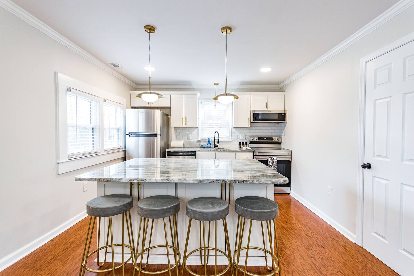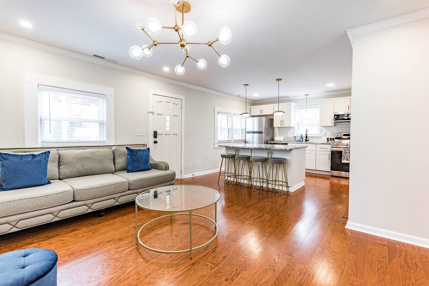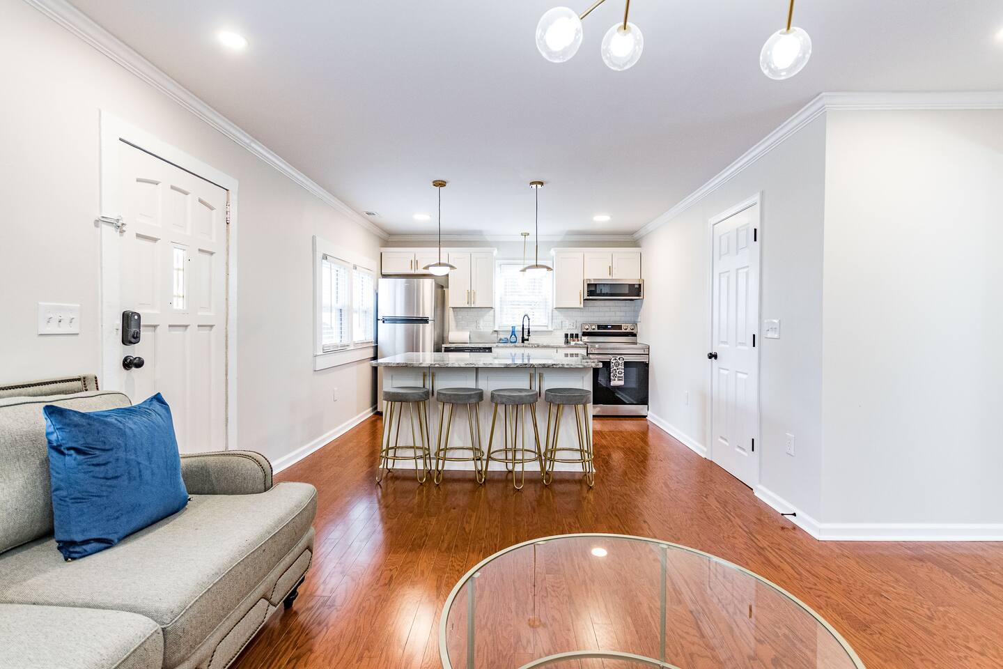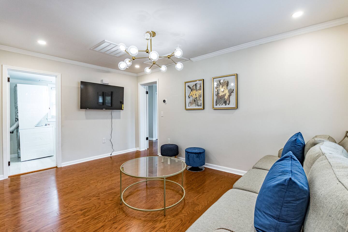 KEY FEATURES: ☀ 2 deluxe bedrooms ☀ 2 full modern bathroom; bathtub and walk-in shower ☀ Cozy living room with flat screen Smart TV ☀ Full kitchen with stainless steel appliances, cookware and utensils ☀ Kitchen Island that seats 4 people ☀ Laundry Area w/ In-unit washer + dryer ☀ Stable wifi 300-500mbps ☀ Centralized AC with a smart thermostat ☀ Nice deck that provides a perfect setting for relaxation and entertaining. ☀ Prime location only minutes from Downtown Wake Forest, Restaurants and Cafes For added security, this property is equipped with a doorbell camera positioned at the front door and two exterior security cameras positioned at each corner of the back part of the property. These cameras are equipped with motion detection and recording capabilities, ensuring an extra layer of safety during your stay. Please rest assured that your privacy is our top priority. The cameras are strictly for exterior monitoring and do not have access to any interior spaces. They are solely in place to enhance security and ensure peace of mind for our guests.